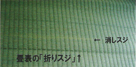 畳表は、産地から消費地に運ぶ際に折り畳んで梱包されておりますので、折りスジはついています。