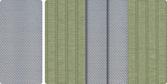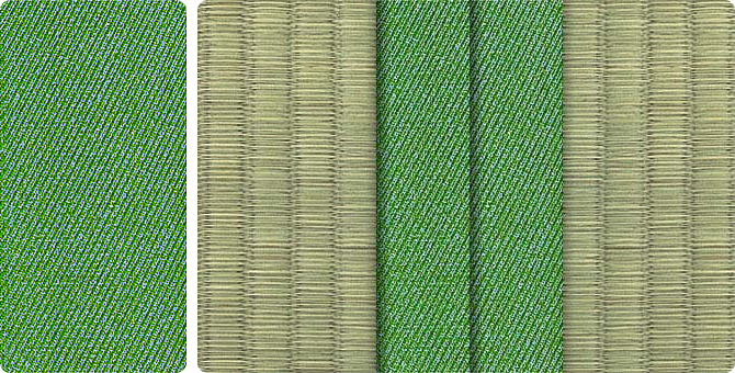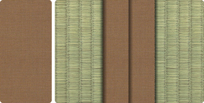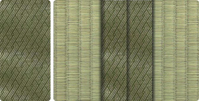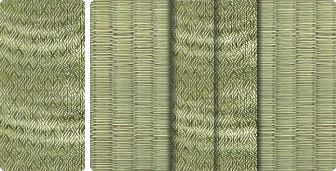 水面に陽の光がきらきらと揺れているような輝きをイメージさせるユニークな地模様が畳をぱっと明るい印象に。アラベスクシリーズの中でも根強い人気を誇る商品です。
