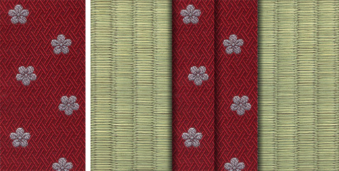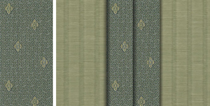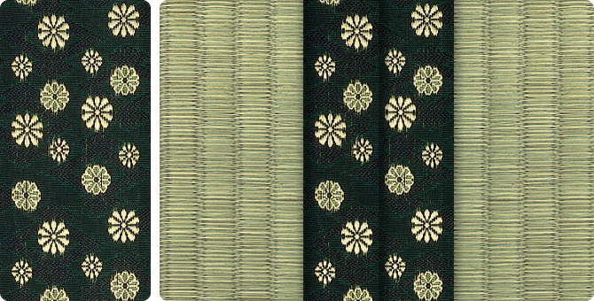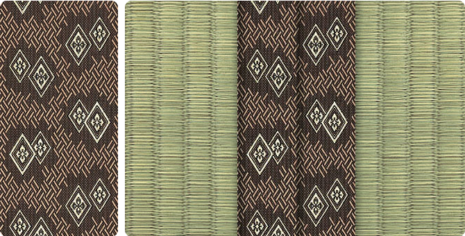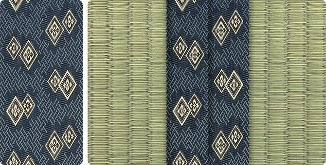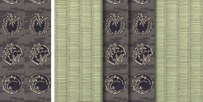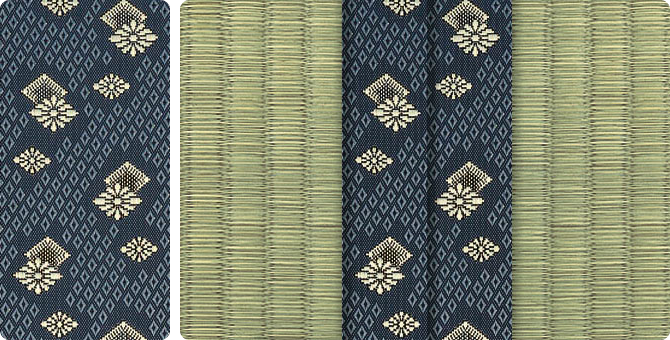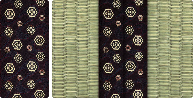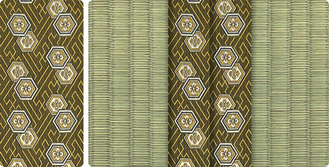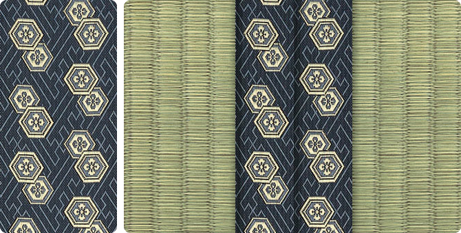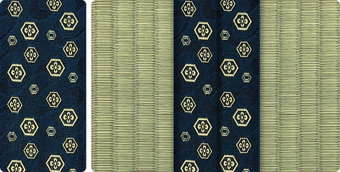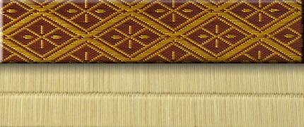 松皮菱、亀甲、流水など和の伝統柄をモチーフに、オリエンタルな雰囲気を香らせる独特なタッチに仕上げられた畳縁です。