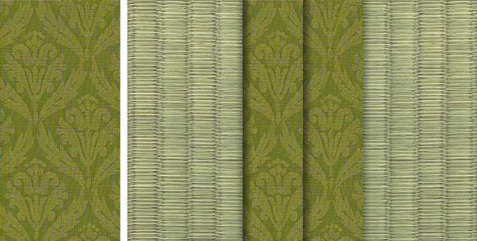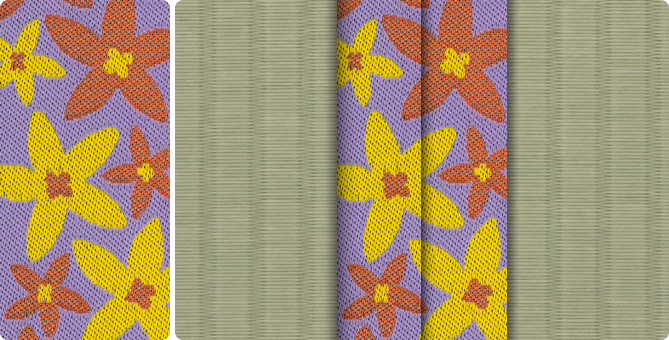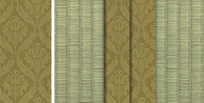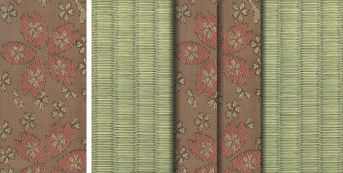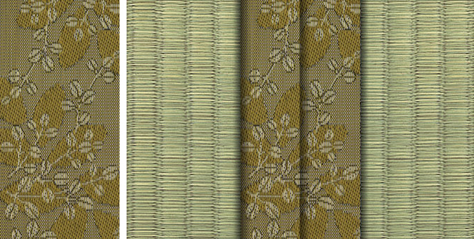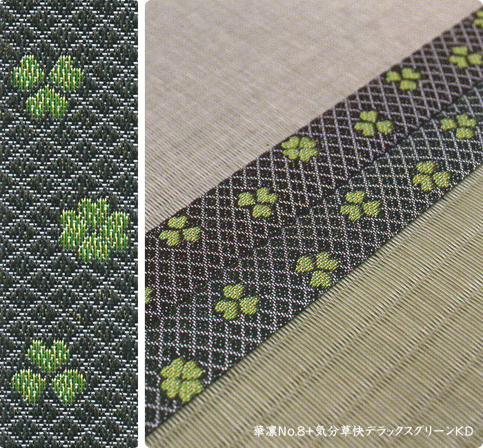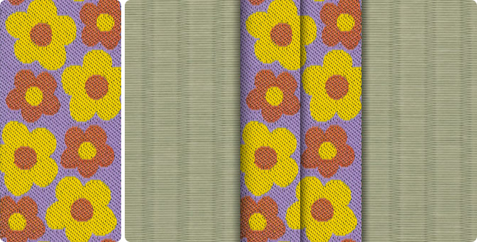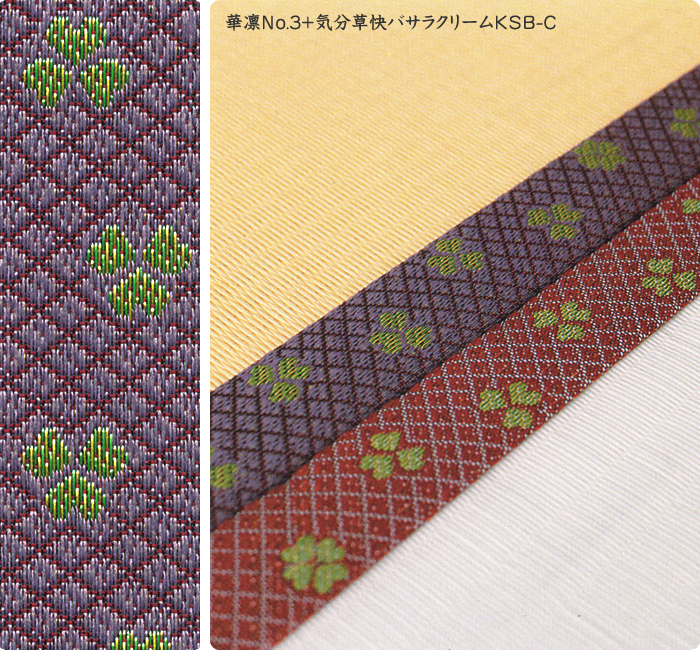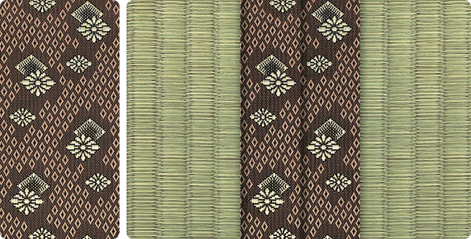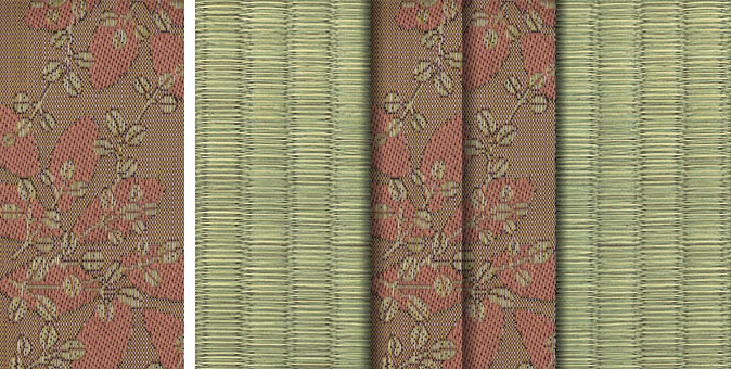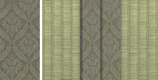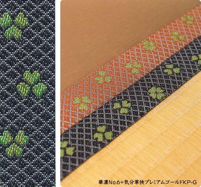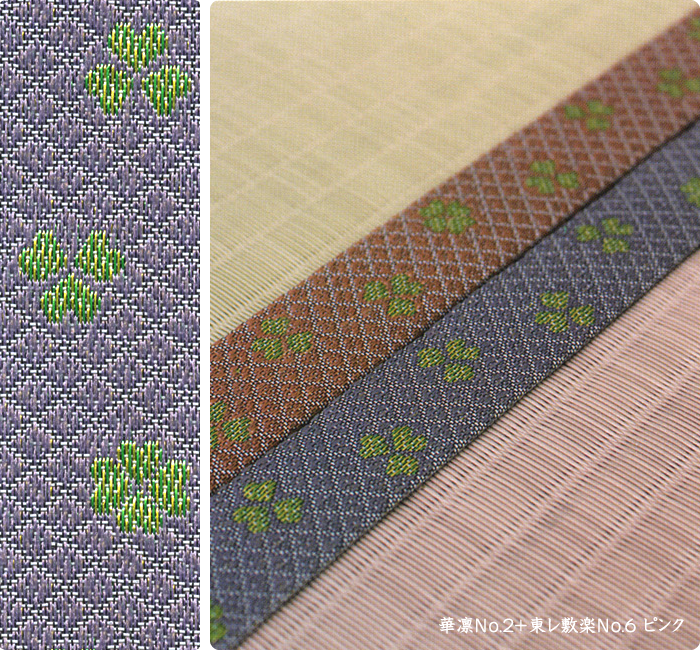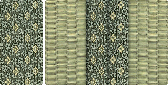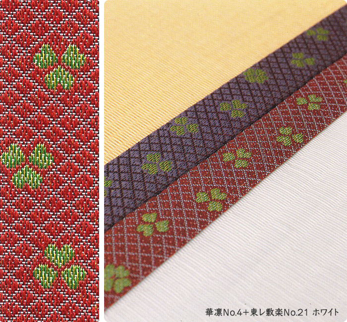 畳へりの種類は約200種あり、オリジナルの四つ葉のデザインをはじめ、純和風から洋風なものまで揃っています。
