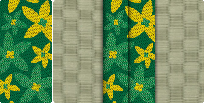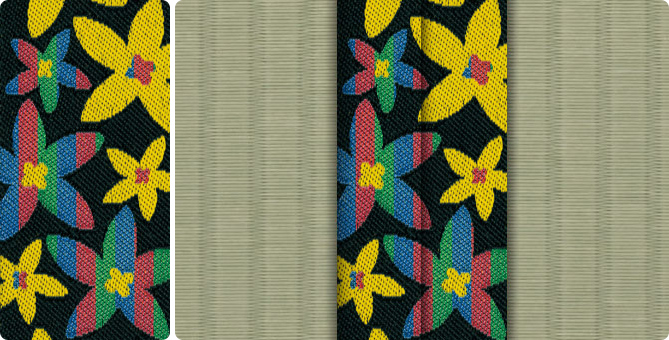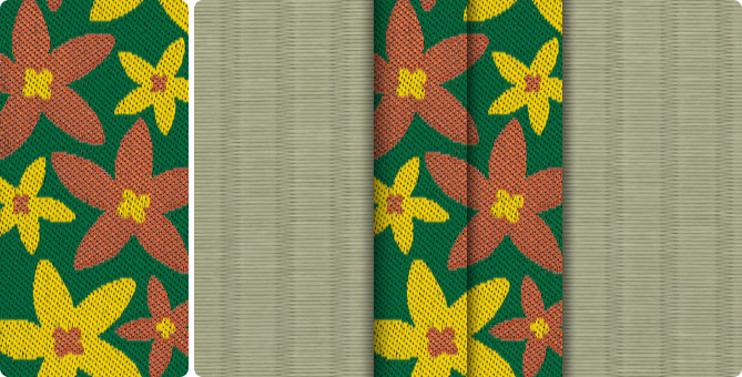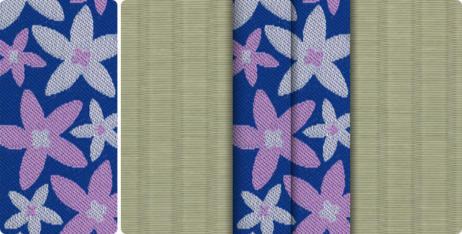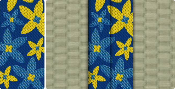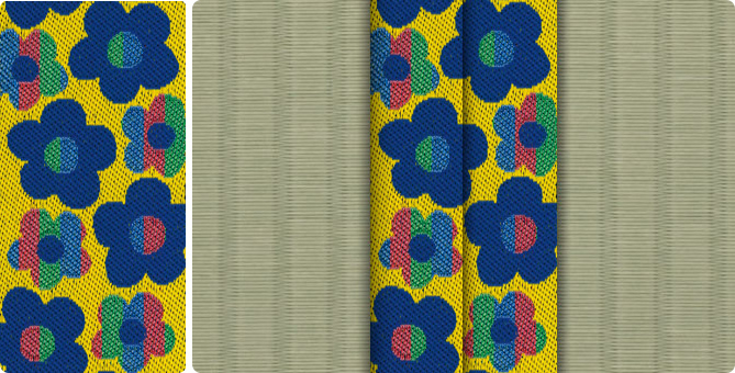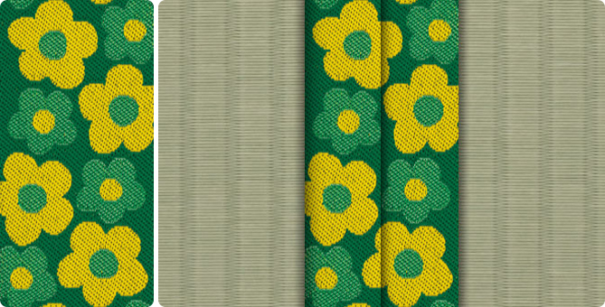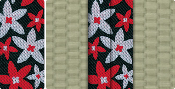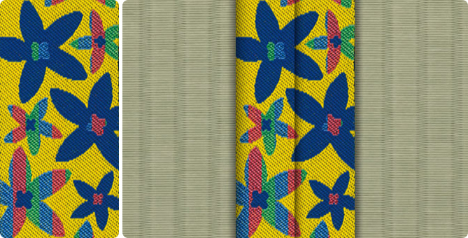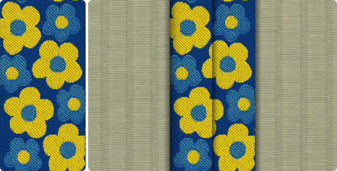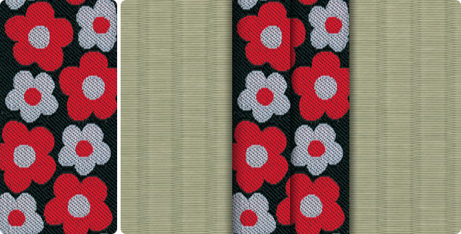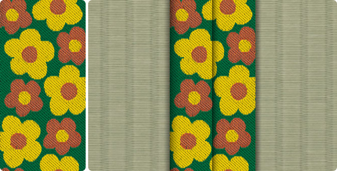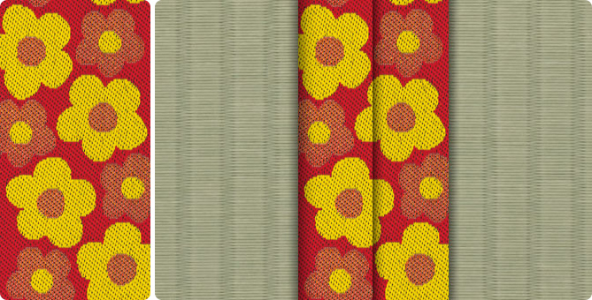 ひときわ目を引くポップな花柄の畳縁で、お部屋もパッと明るくなります。ティーンのお子さまの子供部屋に、お子さまが生まれて新築やリフォームをお考えの若いご夫婦に。元気の出る色目の畳縁の上で、お子さまたちと目一杯遊んでくださいね。