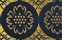 しっかりと織り込んだきちんと感をベースに倉敷の文化遺産である蔵屋敷を思わせる端正な和風柄。