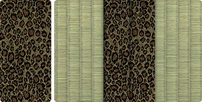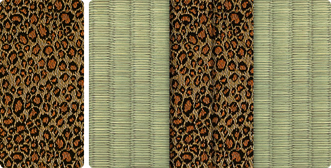 迷彩色、ヒョウ柄、ゼブラ柄…見るだけでも楽しい衝撃の新作。畳縁として使ってみると不思議なことに和室にも違和感なく溶け込むことに驚かされます。
